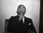 Comedian Eddie Cantor, who performs at Casa Manana, in a suit and tie, seated in a chair. Cantor is making a comical face. 08/22/1939.