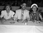 United States Army Engineers working on Trinity River flood control, enjoyed the revue at Casa Manana as guests of Amon Carter; from left, Mrs. B.V. Chadwick and Captain and Mrs. M. J. Asensio (of Galveston), 08/26/1939