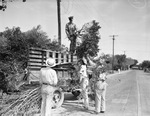 Workmen clear shrubs from the entrance of Forest Park on Forest Park Boulevard. This project was apart of Fort Worth's Park Department's campaign to reduce traffic hazards.