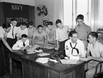 Crowded Navy recruiting office with volunteers responding to a necessary increase in military forces
