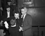 Margaret Batts greets her brother Bobby at Texas & Pacific (T&P) station after Margaret's return from European trip on ship that picked up survivors of the torpedoed British liner Athenia, 09/21/1939