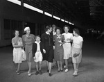 Margaret Batts with group of girls and Bobby Batts, Margaret's brother, at the Texas & Pacific (T&P) station following her trip to Europe aboard ship that picked up survivors from torpedoed British liner Athenia, 09/21/1939