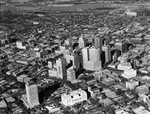 Aerial of downtown Fort Worth, showing Medical Arts building, Burk Burnett park, Texas Electric Co. building on 7th Street, Fort Worth Public Library at 9th and Throckmorton, U.S. Courthouse, Tarrant County Courthouse, and grain elevators, 10/18/1939