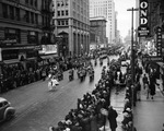 Largest Armistice Day parade ever held in Fort Worth history, moving along Main Street, over 3,000 marchers, 11/11/1939