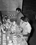 Works Projects Administration (WPA) has Christmas toy factory at Third and Jones St., Fort Worth; from left, Joseph D. Pack, Mrs. Rosemary Gattman, and Mrs. Julia Lee make dolls.