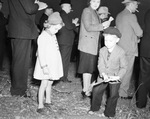 Westover Hills City Hall and Community Center ground breaking; four-year-olds Ellen Roeser, daugher of Westover Hills city commissioner, and John Weldon Farrell, son of mayor John Farrell of Westover Hills, with shovel, 11/09/1939