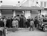 Stripling's department store robbery; investigators, reporters, and spectators outside door where robbery took place.