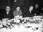 Four men sit at a table during Mr. Carter's 60th Birthday Party.