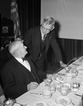 Brotherhood of Locomotive Engineers party; retiring William Powell of Galveston, standing, was oldest active engineer; now Joe Gerard of Cleburne is oldest active engineer, 12/19/1939