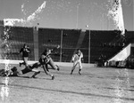 Waco High School vs. Lubbock High School football game at the Cotton Bowl, Dallas, Texas. Joe Tyson, Lubbock being tackeled by Lloyd Myers of Waco.