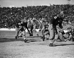 Waco High School vs. Lubbock High School football game at the Cotton Bowl, Dallas, Texas. Lubbock's Howard Alford with the ball. James Merriman (25) and Clifton Hill (22) are also pictured.