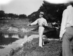 Mayor Jimmy Walker of New York City. Mr. Walker is holding a fishing pole.