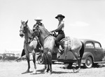 Paul Whiteman on horseback with young woman on horseback at ranch near Stamford, Texas, ca. 1936