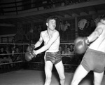 Golden Gloves contestant, Willie Porter, with bloody nose, has just connected with his opponent's chin; Porter took the Y.M.C. A. welterweight championship, Fort Worth.
