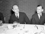 Annual banquet of Haskell Chamber of Commerce; from left, W. L. Pier Vice President of Fort Worth National Bank and principal speaker, and Judge Dennie P. Ratliff, 02/1938