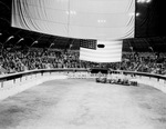 Crowd stands for the national anthem in the Will Rogers Coliseum, possibly during the National Home Show, March 1938.