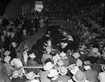 Crowds watching judging of cattle in the North Side Coliseum and Midway during the Fort Worth's Southwestern Exposition and Fat Stock Show, 03/1938