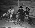 At Fort Worth Southwestern Exposition and Fat Stock Show, cowboys test their saddles, from left, Hub Whiteman (Clarkesville), Bob Walden (Cheyenne, Wyoming), and Stub Bartlemay (Arlington, Oregon).