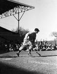 Merv Connors, graduate of East Texas Baseball League and player for Saint Paul Saints, gets a base hit off Fort Worth Cats' Joe Gibbs.