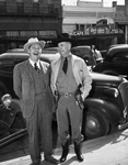 Amon Giles Carter (right) pictured with an unidentified man. They are standing in front of a car.