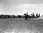 Cowboys and horses performing barrel races on the 6666 Ranch, 04/1939