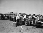 People standing in line for food outside on the 6666 Ranch, 04/1939