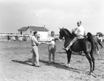 C. T. McLaughlin Diamond-M Ranch horse show, horse and rider and others unidentified, 06/1939
