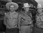Rodeo and cowboy's reunion held consecutively with Texas Postmasters convention at Big Spring, Texas; rodeo boosters, from left, James Eason, Lewis Rix, and Eugene Thomas, 06/1939