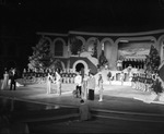 Finale of the 1939 Casa Manana show; showgirls, stars, and a dog on stage, 07/1939