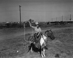 Wayne McGill, age 7 of Kilgore, young horse trainer, with his favourite horse, Rukus, a Shetland pony, performs for the Texas Cowboy Reunion at Stamford, 07/1939
