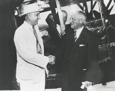 Airplanes; Shaking hands; Garner, John Nance, 1868-1967