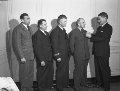 American Airlines. Service awards. Ralph S. Damon, right, making the awards