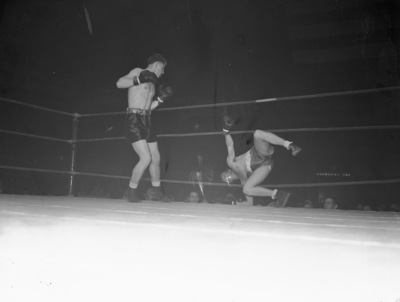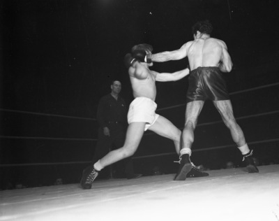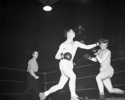 Golden Gloves. Action. Donald Nasche, right, and Thomas (Dutch) Harris.