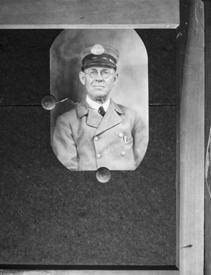 "Spunky," mixed breed dog being scolded by Sergeant John Cleary