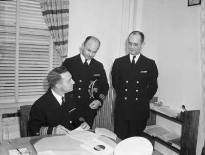 Ensign John S. Justin Junior of the Maritime Service shown buying bond from H. N. Fisch