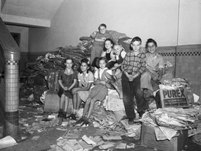 Waste Paper Collection. Ernest Parker Junior High School Student council officers shown with waste paper