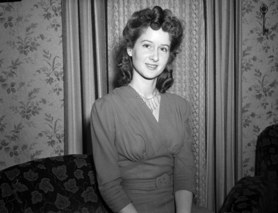 Miss Dorothy Summers married Mr. Enis Kerlee on October 17, 1941. The newlyweds are planning to make their home in Fort Worth, Texas. Mrs. Kerlee is shown sitting on the arm of a chair. She is wearing a long-sleeve blouse, pinstripe skirt, belt, and a necklace.