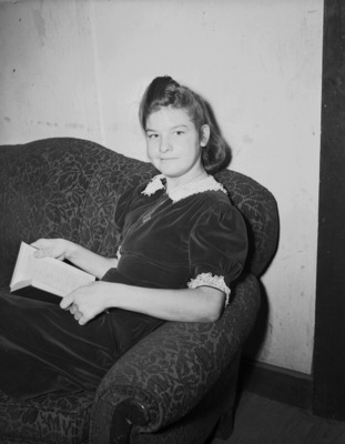 Virginia Whitlock, 17, girl who has gained the power of speech, overcoming the second and last of her physical defects caused by an injury at birth. Physicians and her parents Mr. And Mrs. L.A. Whitlock despaired that she would ever walk or talk. Young woman sitting on a couch reading a book.
