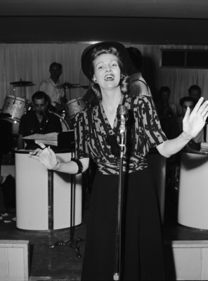 For the East Side Lions Club, songstress Emily Stephenson, singer at Clover Club will be one of the entertainers for the East Fort Worth Lions Club's benefit program at midnight Friday at the Worth Hotel. The benefit is to raise funds to provide eyeglasses for underprivileged children and vocational education for needy blind adults. Miss Stephenson is singing at the mic. Published in the Fort Worth Star-Telegram evening edition, October 24, 1941.