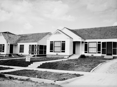 These two new homes, located at 1005 and 1007 East Robert Street, will be opened Sunday for inspection. Six other new dwellings are under construction on adjacent lots. The homes have five rooms and are of clapboard construction. Published in Fort Worth Star-Telegram October 26, 1941.