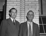 Many students returned to Birdville High School for the first ever homecoming program staged for former students. Tom Bussey, right, was elected president of an association to make the homecoming an annual event. He is dressed in a suit and standing next to an unidentified man.