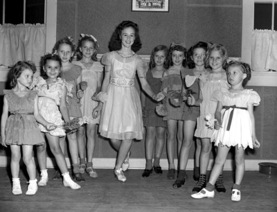 Hubenak, Jo Ann; Longer, Betty Ann; Bradford, Beverly Jo; Milan, Frances; Carter, Patsy; Polasek, Georgia; Hill, Mae Jean; Hubenak, Martha; Proslicka, Eldora; Lesiker, Patricia Ann; Czechoslovakian Independence Day; Parties; Celebrations; Dancers; Dresses; Flower Drill; Sokol Hall