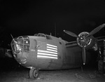 American delegates embarked on a 28,000 mile around the world trip. The Harriman Mission to Russia is the first world tour since the war began in Europe. The team traveled on a consolidated B-24 Army Bomber, which departed from Bolling Field in Washington, D. C. The plane has averaged 230 miles per hour over the entire distance. The crew stopped in Fort Worth, Texas, on their way home to Washington, D. C. The plane is pictured at the Municipal Airport, Wednesday night for the layover. An American flag is painted on the side and a gun is visible at the nose. The mission marked the first time a B-24 crossed the Pacific Ocean.