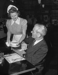 Jack Boyle dodging a bowl of soup as waitress Ann Palmer serves incorrectly.