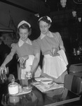 Left to right, waitress Ray Wilcox, and waitress Alyene Raifsnyder placing tableware.