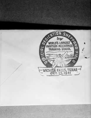 United States Post Office dedication stamp for Sheppard Field. The stamp is printed on an envelope. Published in The Fort Worth Star-Telegram Morning Edition November 2, 1941.