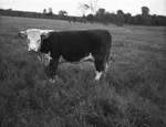 Hereford Cow owned by Jinkins Ranch. Bianca Mischief 49th is one of the attractive animals in the Jinkins Ranch breeding herd near Normangee, where on November 10, an auction of 40 animals will be held. Drs. W.J. and J.L. Jenkins, owners of the ranch, have topped numerous sales in building up their heard of registered Herefords. They are among the cattlemen now breeding good cattle in sections of Texas which a few years ago produced very few beeves.