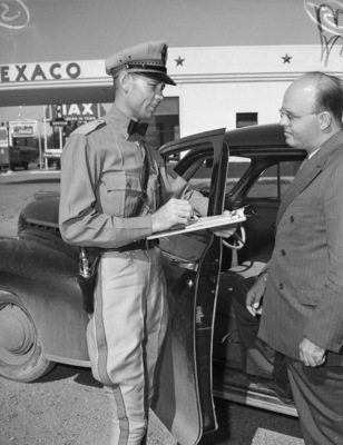 V. Venrick taking driver's license tests from Officer J. L. Rogers.
