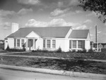 Exterior shot of the newly constructed white clapboard house that will serve as the home of Mr. and Mrs. Herbert L. Cox.