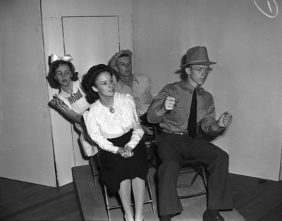 Poly High School. Play casts. Front row, left to right, Bonnie Sue Tannahill and Owen Cain; back row, Bettye Jean Neal and Lonnie Hudkins.